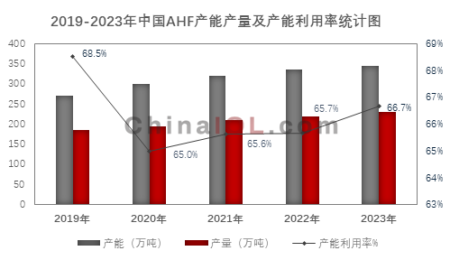 近年來,鋰電池、新能源汽車、光伏、半導(dǎo)體等新興行業(yè)高速發(fā)展,氟化工產(chǎn)品需求激增,帶動氟化工行業(yè)高速擴容。而無水氫氟酸(AHF)作為制取氟化工下游產(chǎn)品的原材料,是氟化工行業(yè)最為重要的中間體,其產(chǎn)能、產(chǎn)量也隨行業(yè)發(fā)展持續(xù)增長。